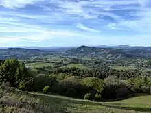 Sonoma Mountain is a prominent landform within the Sonoma Mountains of southern Sonoma County, California.[2] At an elevation of 2,463 ft (751 m),[1] Sonoma Mountain offers expansive views of the Pacific Ocean to the west and the Sonoma Valley to the east. In fact, the viticultural area extends in isolated patches up the eastern slopes of Sonoma Mountain to almost 1,700 feet (520 m) in elevation.