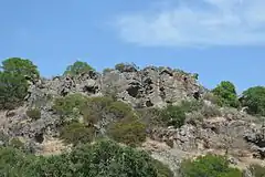 The Sonoma Volcanics are a geologic formation of volcanic origin that is widespread in Napa and Sonoma counties, California. Most of the formation is Pliocene in age and includes obsidian, perlitic glass, diatomaceous mud, pyroclastic tuff, pumice, rhyolite tuffs, andesite breccias and interbedded volcanic (basalt) lava flows. The formation serves as the parent material for many of the soils in the Napa and Sonoma wine regions.[3][4]