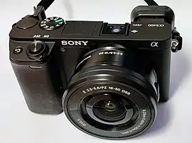 The Sony α6400 (model ILCE-6400)[1] is a digital camera announced January 15, 2019.[2] It is an APS-C mirrorless interchangeable lens camera (MILC) designed to be a mid-range mirrorless camera and act as an update of the α6300. Sony is targeting the vlogging community with the α6400's flip-up screen and aggressive pricing.[3] It features the same 24 megapixel sensor seen in the α6500. At the time of release, the two most capable cameras in the α6000 series of cameras were the α6400 and the α6500. The α6500 featured in-body image stabilization, and a larger image buffer, but in most other respects the α6400 is a more advanced camera. This is largely due to its processing power, enabling features like animal eye AF, and autofocus tracking. These features, for example, can not be added to the α6300 via a firmware update, as it is too demanding a feature.