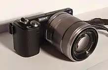 The Sony E 18-55mm F3.5-5.6 OSS is a variable maximum aperture standard zoom lens for the Sony E-mount, announced by Sony on May 11, 2010. The lens is often bundled with various Sony α mirrorless cameras as a "kit lens".[1]