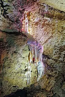 In 2012, the lighting system of the cave was completely renewed with LEDs.[19] Since LED lamps produce less UV light than conventional lamps, plant growth in the cave is reduced. The mosses and ferns created by the old lamps were removed except for a few voucher specimens. A modern security system against burglary and vandalism was also installed during the remodeling.[19]