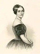 In 1841, she had married Ernst Friedrich Diez, who was 15 years her senior and sang as a tenor with the Munich Hofoper from 1837 to 1849.[3] They appeared in several productions together, including the Munich premiere of Lortzing's Zar und Zimmermann in July 1841—she as Marie and he as the Marquis de Chateauneuf.[8] Sophie Diez died in Munich in 1887 at the age of 66 and was buried in the Alter Südfriedhof cemetery.[9] Her husband died five years later. Richard Strauss dedicated several of his early songs to her, including his 1879 Für Musik, a setting of Emanuel Geibel's poem "Nun die Schatten dunkeln" ("Now the Shadows Darken").[2][10]
