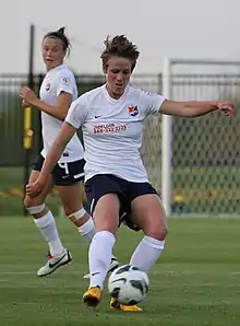 After three seasons with Frankfurt, Schmidt would sign with NWSL club Houston Dash in 2019.[11] During the 2020 NWSL Challenge Cup Final, she would score a penalty, helping the Dash defeat the Chicago Red Stars for the club's first major trophy.[12] In December 2020, she would re-sign with the Dash through the 2022 season, with the Dash having an option for the 2023 season.[13]