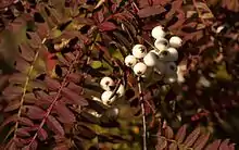 Sorbus frutescens is a species of rowan native to Gansu province of China.[2] Often mistakenly lumped in with Sorbus koehneana, it is a very small tree reaching only 2 m at maturity, with white fruit[3] against dark green pinnate leaves which turn shades of red and bronze in autumn.