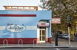 The flagship Souley Vegan, at 301 Broadway in East Oakland, is located in the oldest building in Oakland. The building was built in 1857 out of brick and plaster in the simplified Italianate style.[7]