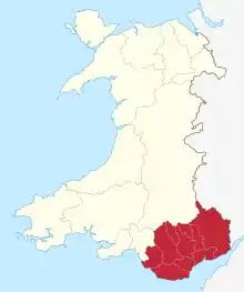 South East Wales is a loosely defined region of Wales generally corresponding to the preserved counties of Mid Glamorgan, South Glamorgan and Gwent. Highly urbanised, it includes the cities of Cardiff and Newport as well as large towns in the South Wales Valleys.