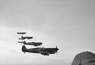 Five SAAF squadrons were designated to support the July 1943 invasion of Sicily – 1 Squadron operated combat air patrols over the beaches for the Operation Husky landings[35] while 2,[36] 4[37] and 5[38] Squadrons provided fighter bomber support during the Sicilian campaign. 30 Squadron (flying as No. 223 Squadron RAF during the campaign) provided light bomber support from Malta[39] and 60 Squadron was responsible for photo reconnaissance flights in support of all Allied forces on the island.[40] After successfully invading the island, a further three squadrons were moved to Sicily and the eight squadrons on the island were tasked with supporting the invasion of Italy: 12 and 24 Squadrons were responsible for medium bomber missions to "soften up" the enemy prior to the invasion while 40 Sqn was responsible for tactical photo-reconnaissance. 1 Squadron provided fighter cover for the 3 September 1943 landings while 2 and 4 Squadrons were responsible for bomber escort.[35]