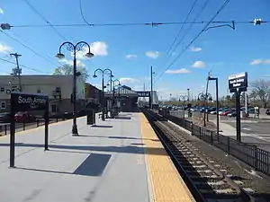 South Amboy is a commuter railroad train station in the city of South Amboy, Middlesex County, New Jersey. Servicing trains of New Jersey Transit's North Jersey Coast Line, electric trains go between New York Penn Station and Long Branch. There are also diesel trains that go through to Bay Head. The next station to the north, across the Raritan River, is Perth Amboy and the next station to the southeast is Aberdeen–Matawan. The station consists of two tracks and a single high-level island platform that is handicap accessible.