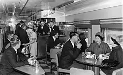 One cafeteria car, number C1, was constructed at the South Australian Railways' Islington Railway Workshops in 1947, as one of the first Australian railway vehicles utilising corrugated stainless steel plates for the exterior. The design was based on contemporary streamliner cars in the United States, which had been seen by the Chief Mechanical Engineer, Frank Harrison, on his tour to the United States soon after World War II.[2] It was the prototype for concepts to be included in the new fleet of cars for The Overland, and was intended to "surpass other buffet cars" in manufacture quality and passenger comfort; the design was detailed down to the level of the food trays, which were introduced on the vehicle long before they became common practice on airlines.