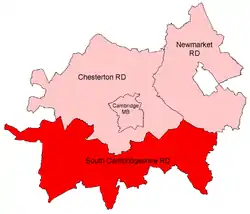 52°05′46″N 0°05′13″E / 52.096°N 0.087°E / 52.096; 0.087 South Cambridgeshire was a rural district in Cambridgeshire, England[1] established in 1934 under a County Review Order as a merger of Linton Rural District and Melbourn Rural District[2] and part of Caxton and Arrington Rural District.[3] In 1965 it became part of the new administrative county of Cambridgeshire and the Isle of Ely. It was abolished in 1974 under the Local Government Act 1972, and merged with the Chesterton Rural District to form a new South Cambridgeshire district.[4]