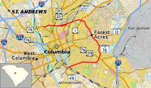 South Carolina Highway 16 (SC 16) is a 9.6-mile-long (15.4 km) primary state highway in the U.S. state of South Carolina that exists mostly within Columbia in Richland County. Its routing is in a backward C-shape.