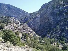 In the southern third of the Wilderness, Long Valley forms an open bowl between high mountain ridges. Rolling hills of pinyon and juniper forests and deep canyons of riparian vegetation round out the ecological and scenic diversity.[1] Angel Cave, a mostly-unexplored, limestone pit cave, lies within the Wilderness at an elevation of approximately 9,000 feet (2,700 m).[3]