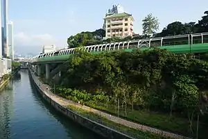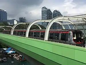 The South Island line (Chinese: 南港島綫), identified by light green on the MTR route map, is a rapid transit line of Hong Kong's MTR metro system. This line connects the HK business district from Admiralty station to the Southern District of Hong Kong Island and the island of Ap Lei Chau, which was not served by any rail transport prior to the opening of this line.[2] The rolling stock of South Island line is purpose-built for driverless operation. Trains are remotely controlled from the Operations Control Centre in Tsing Yi. Approved by the Executive Council in 2007,[3] the line commenced service on 28 December 2016.[4]