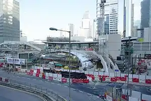 Expansion works at Admiralty station in November 2016. Underground are a new concourse, and the platforms of the South Island line and the North South Corridor. Harcourt Garden will be restored as a podium garden after the completion of the work.