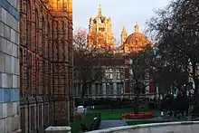 South Kensington is a district just west of Central London in the Royal Borough of Kensington and Chelsea. Historically it settled on part of the scattered Middlesex village of Brompton.[1] Its name was supplanted with the advent of the railways in the late 19th century and the opening (and shutting) and naming of local tube stations.[2] The area has many museums and cultural landmarks with a high number of visitors, such as the Natural History Museum, the Science Museum and the Victoria and Albert Museum. Adjacent affluent centres such as Knightsbridge, Chelsea and Kensington, have been considered as some of the most exclusive real estate in the world.