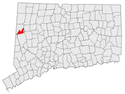 South Kent is located in Litchfield County. Its location is 41°42′01″N 73°26′49″W / 41.70028°N 73.44694°W. South Kent's terrain is mostly hilly, with small valleys and upland plateaus. There are several bodies of water in South Kent, including Hatch Pond, Mill Pond, Mud Pond, and South Spectacle Lake.