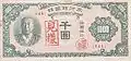 1000 won | 171 × 78 mm | green | Value | July 22, 1950 | National Printing Bureau | ||