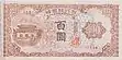 100 won | 158 × 78 mm | brown | Gwanghwamun | Value | July 22, 1950 | February 17, 1953 | National Printing Bureau (Japan) |