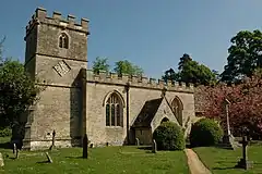 The Church of England parish church of Saint James the Great began as a chapel of the parish of Stanton Harcourt, and remained so until 1868.[5] The oldest parts of the church building date from the latter part of the 12th century. The present chancel arch was built about 1300, the tower arch was built during the 14th century and the south doorway of the nave dates from about 1400. The church building was extensively altered in the 15th century: the north aisle and chapel were added, the bell tower was completed, and new windows were inserted in the south and east walls of the chancel.[5]