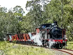 In 1995, 18 was placed on permanent loan to 3801 Limited, to operate The Cockatoo Run from Wollongong to Moss Vale.[3] After The Cockatoo Run ceased in 1998 it was stored at Eveleigh Railway Workshops.[4] The locomotive was sent to Bradken Rail's workshops at Braemar and overhauled, and transferred to Hunter Valley Railway Works at Rothbury in early 2007. 18 was significantly modified whilst under 3801 Limited's care, including but not limited to an extended self-cleaning smokebox, replacement welded tanks, a complete mechanical ash pan and hopper release, and an enlarged bunker, all of which (Excluding the bunker) it still carries.