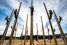 Students around pole circle at Southeast Lineman Training Center in Trenton, GA.