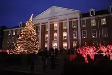 The Celebration of Lights has been a Christmas tradition at SAU since 1984. What once started as a single display to celebrate the 75th anniversary of the school has become an annual part of the holidays in Magnolia. During the celebration, a large Christmas tree is lit in front of Overstreet, as well as light displays all over campus. Additional strands of lights are strewn along the 187-foot SAU bell tower, transforming it into a giant Christmas candle. Included in the festivities each year are: the Magnolia City Christmas Parade, caroling, pictures with Santa Claus for the children, and a holiday buffet dinner for the community.[26]