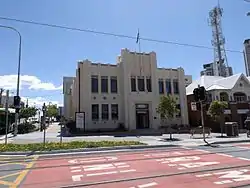 The former Southport Town Hall is a two storeyed rendered brick and concrete building situated on the corner of Nerang and Davenport Streets, Southport. The front facade of the building is set back from the Nerang Street footpath, allowing for a small lawned entrance court.[1]