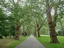 As with many spaces within London, the Plane tree (Platanus x hispanica) is dominant within Southwark Park, particularly the northernmost section around the bandstand, which runs next to Jamaica Road.