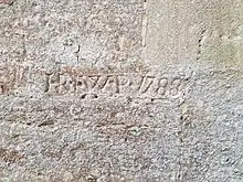 For much of the period from the late 17th century until the mid-19th century, Southwick Court was leased to tenants. The MP and political pamphleteer John Trenchard, co-author of The Independent Whig, lived in the house until his death in 1723.[10] In 1733, the manor was being let to one Richard Pinnock for an annual rent of £126.[11] In 1788, further alterations were made to the house and a new set of initials inscribed on the same wing upon which Walter Bush had left his mark more than two centuries before. These carvings, however, have survived the weather less well than their predecessors, making the letters indistinct. In 1820, the occupier was James Chapman with his family.[12]