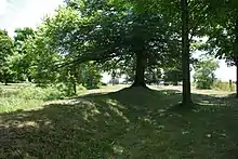 ![]() Trees growing out of the remains of raised earthworks at the site. | |