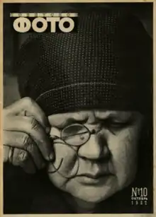 This conflict of avant-garde "Octoberist" photographers and photographers of and for the proletariat culminated in 1931 with the formation of the Russian Association of Proletarian Photo Reporters (ROPF),[7] which promoted its mission to use photography as “a weapon for the socialist reconstruction of reality” in Sovetskoe foto.[8] Throughout the 1930s the journal became increasingly conservative in valuing content over form, and by the mid-1930s Sovetskoe Foto's cover shots of workers and working photographers were being replaced by those of the leaders and apparatchiks, with Stalin gracing almost every cover.[6]