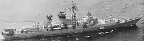 Admiral Nakhimov (Russian: Адмирал Нахимов) was a Project 1134A Kresta II-class cruiser of the Soviet Navy, named for Russian naval commander Pavel Nakhimov. The third ship of her class, the ship served during the Cold War, from 1971 to 1991. She served with the Northern Fleet for the duration of her career, often operating in the Atlantic and the Mediterranean in order to show the flag. She was decommissioned in 1991 before being sold for scrap due to reduced naval funding in 1993.
