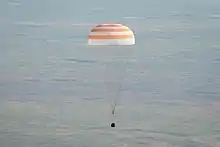 The Soyuz TMA-20 capsule descends toward landing.