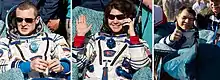 The Soyuz crew is pictured shortly after landing.