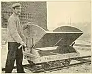 The wooden V skip wagons had double-flange wheels and were very practical. The contents fell far enough from the rails that it did not block the track. As it tilted, all of the contents slid out of the skip without much of it, unlike what happened with other systems, remaining where it had to be shoveled out by hand. The chassis of the tippers could be used as a flat wagon for the transport of general cargo after removing the arched supports at both ends, which were just held in place by a stud and some screws.