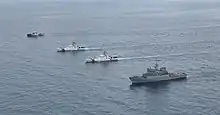 Vigía conducting an at-sea exchange exercise with USCGC Clarence Sutphin Jr. and USCGC John Scheuerman