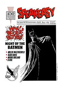 Beginning in the summer of 1988, Speakeasy began being distributed in the United States via Eclipse Comics[5] (which had a co-publishing arrangement with Speakeasy's parent company Acme Press).