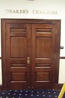 The front entrance to the Speaker's chambers in the Alaska State Capitol.