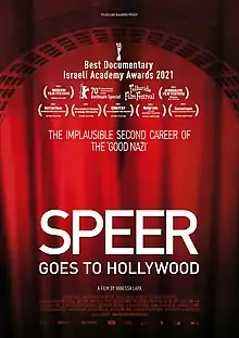 Speer Goes to Hollywood is a 2020 Israeli documentary by director Vanessa Lapa, starring Albert Speer. The film premiered at the Berlin International Film Festival in February 2020 as part of the Berlinale Special. The Israeli premiere took place as part of the official competition of the Jerusalem Film Festival 2021, where Lapa won the Diamond Award for directing.[1] The American premiere took place at the Telluride Film Festival in Colorado.[2] The film won the Best Documentary by the Israeli Academy - Ophir Award for the year 2021.[3]