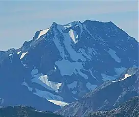 Spider Mountain is an 8,286-foot (2,526-metre) mountain summit located in the Glacier Peak Wilderness in western Chelan County of Washington state.[4] It is part of the North Cascades, which is a subset of the Cascade Range. Meltwater from the Spider Glacier on the steep north face, and other surface runoff from the mountain drains into Flat Creek, which is a tributary of the Stehekin River. The nearest higher neighbor is Mount Formidable 1.5 miles (2.4 km) to the west.[1] The Middle Cascade Glacier lies between these two mountains, and the Ptarmigan Traverse passes through also.
