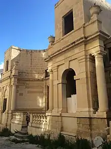 When Fra Paolo Rafel Spinola built the palace, he also built a church dedicated to the Immaculate Conception nearby. The first stone of the church was laid on 16 June 1687, and it was consecrated on 10 September 1688.[4][75] The church was enlarged and its façade was rebuilt in 1914. The church is on the list of the National Inventory of the Cultural Property of the Maltese Islands.[76][77]