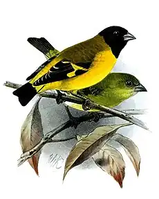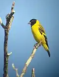 Spinus is a genus of passerine birds in the finch family. It contains the North and South American siskins and goldfinches, as well as two Old World species.