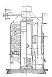 The Lune Valley boiler was a small oil-fired boiler, used by the Lune Valley Engineering Co. of Lancaster, England for steam launches and small steamboats.[7][8] Each steam generator tube consisted of three turns, giving a greater heating surface for the number of pipe joints to be made. These coils were still arranged in tiers.
