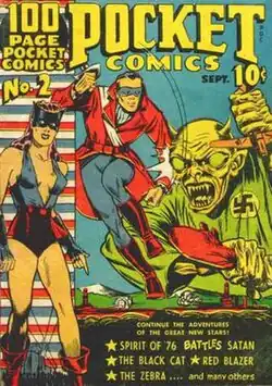 Pocket Comics #2 (September 1941), featuring the Black Cat and the Spirit of '76. Cover artist tentatively identified as Bob Powell.