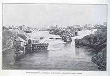 The Native American name for the Spokane Falls was "Stluputqu", meaning "swift water". The falls was once the site of a large Spokane people village.[1]