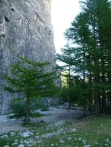 The first edition of Sportroccia was organized in 1985 on the initiative of Andrea Mellano, a strong climber of the '60s and a member of the Italian Academic Alpine Club, and the journalist and writer Emmanuel Cassara. The jury was composed of Riccardo Cassin, Oscar Soravito, Maurizio Zanolla and Heinz Mariacher.[3] The competition was contested on the Parete dei Militi (Wall of the Soldiers) in Valle Stretta, near Bardonecchia. The fact that the races were held on the rock and not on artificial walls put the organizers in the vanguard of several issues that eventually led to moving climbing competitions to artificial walls only.
