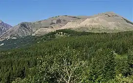 Spot Mountain is a 7,831-foot-elevation (2,387-meter) mountain summit located in the Two Medicine area of Glacier National Park, in Glacier County, Montana, United States.[3] It is situated in the Lewis Range, nine miles northwest of East Glacier Park Village, and approximately five miles east of the Continental Divide. Precipitation runoff from the mountain drains into tributaries of Cut Bank Creek and Two Medicine River, which merge to form the Marias River. Topographic relief is significant as the south aspect rises nearly 3,000 feet (910 meters) above Lower Two Medicine Lake in two miles. The mountain's name was officially adopted in 1929 by the United States Board on Geographic Names.[3]