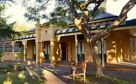 In 1892, James Hunter Lawson built Braemar, a large, single-storey house situated on a sixty-acre property on Macquarie Road. Braemar started as a family residence, but later became a convalescent home, a boarding house, a private home again and a guesthouse. It was acquired by the Blue Mountains City Council in 1974, restored as a Bicentennial project and reopened in 1988. It serves as a community gallery and centre, staffed by volunteers. The local library is housed in a new building behind Braemar.[6]