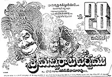 Srimad Virata Parvam is a 1979 Telugu-language Hindu mythological film, produced and directed by N. T. Rama Rao under his Ramakrishna Cine Studios banner. It stars N. T. Rama Rao, Vanisri, Nandamuri Balakrishna and music composed by Susarla Dakshina Murthy.[3][4] The film is based on Virata Parva from epic Mahabharata in which NTR has performed 5 pivotal roles, after blockbuster success of Daana Veera Soora Karna (1977), in which he emoted 3 different roles. It is a color remake of the 1966 movie Nartanasala both starring N.T.Rama Rao as Arjuna.