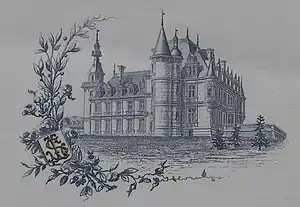Stéphen Liégeard built the Château de Brochon in an estate near Brochon, Côte-d'Or that was partly acquired at the start of the 19th century by his grandfather, Étienne Liégeard. Étienne's son Jean-Baptiste completed the purchase in 1843, and Jean-Baptiste's son Stephen Liégeard bought the old castle that belonged to the estate from the family of the engineer Henry Darcy.[3] Stéphen Liégeard had the château built as a monument to his wealth and good taste. Construction started in 1895 directed by the architects Louis Perreau and Leprince, a pupil of Eugène Viollet-le-Duc. The artists Xavier Schanosky, Achille Cesbron and Paul Gasq decorated the château.[3]